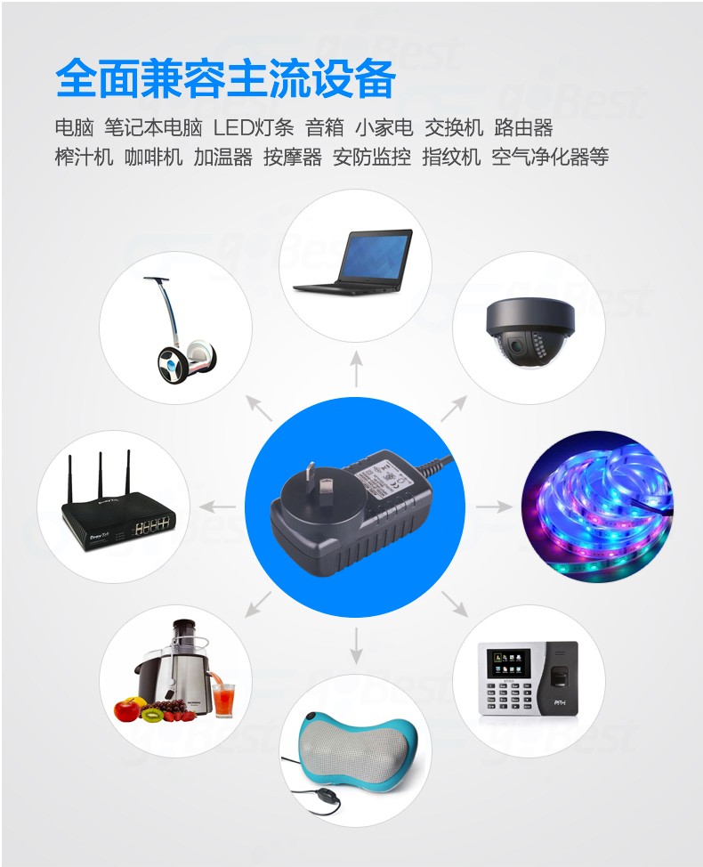 • 采用前沿IC控制方案和先進(jìn)的制造工藝,高精度,低噪音;過壓,過流,過充,短路等多重保護(hù)。