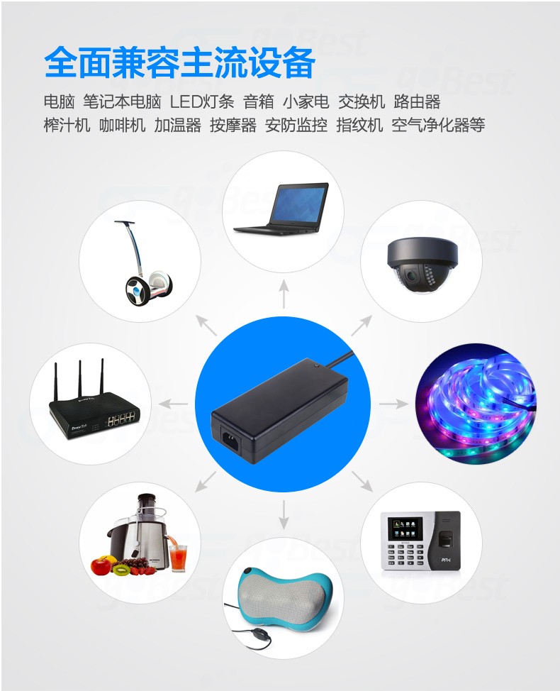 • 采用前沿IC控制方案和先進的制造工藝,高精度,低噪音;過壓,過流,過充,短路等多重保護。