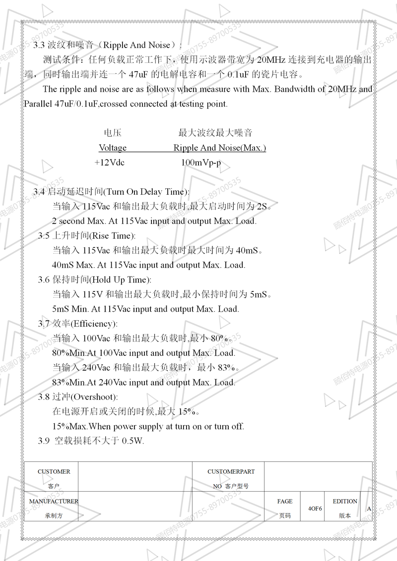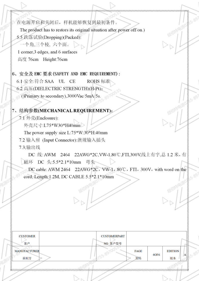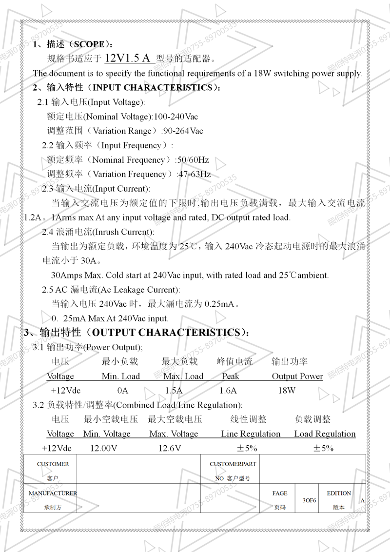 19V3.5A電源適配器規格書